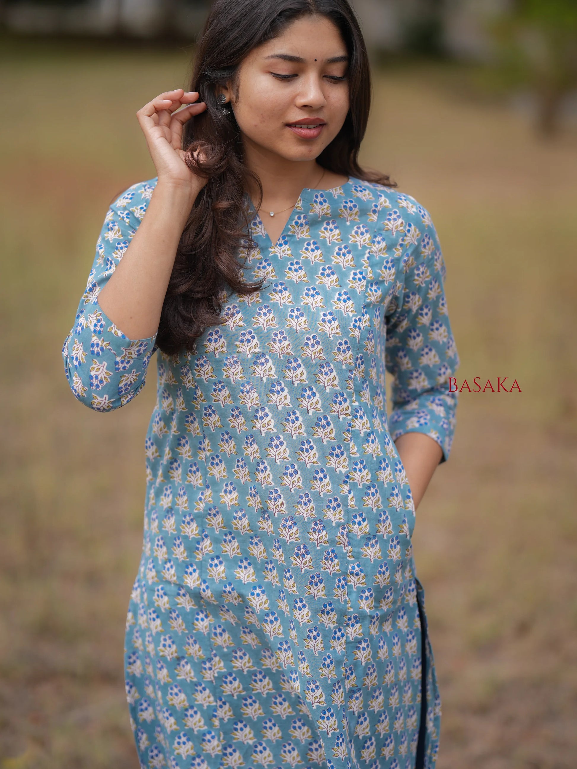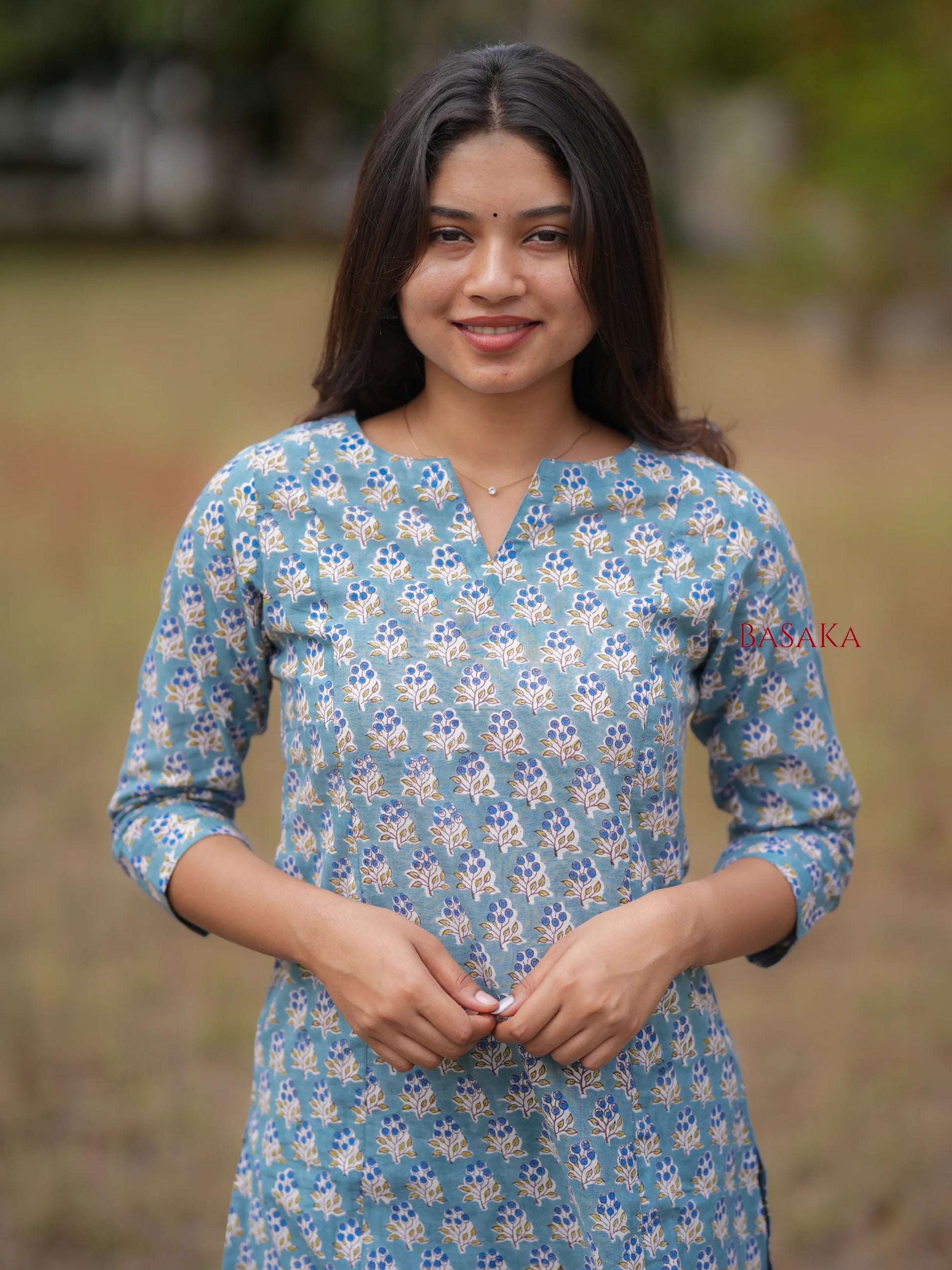After many years I skeptically purchased a ready-made set. But this ended up as my best purchase. The colour is fresh, vibrant. The fabric is very good quality handloom cotton with excellent quality lining as well that feels most comfortable on the skin. Most importantly the overall design & fit turned out to be amazing for my size. Truly love this set. Thank you!