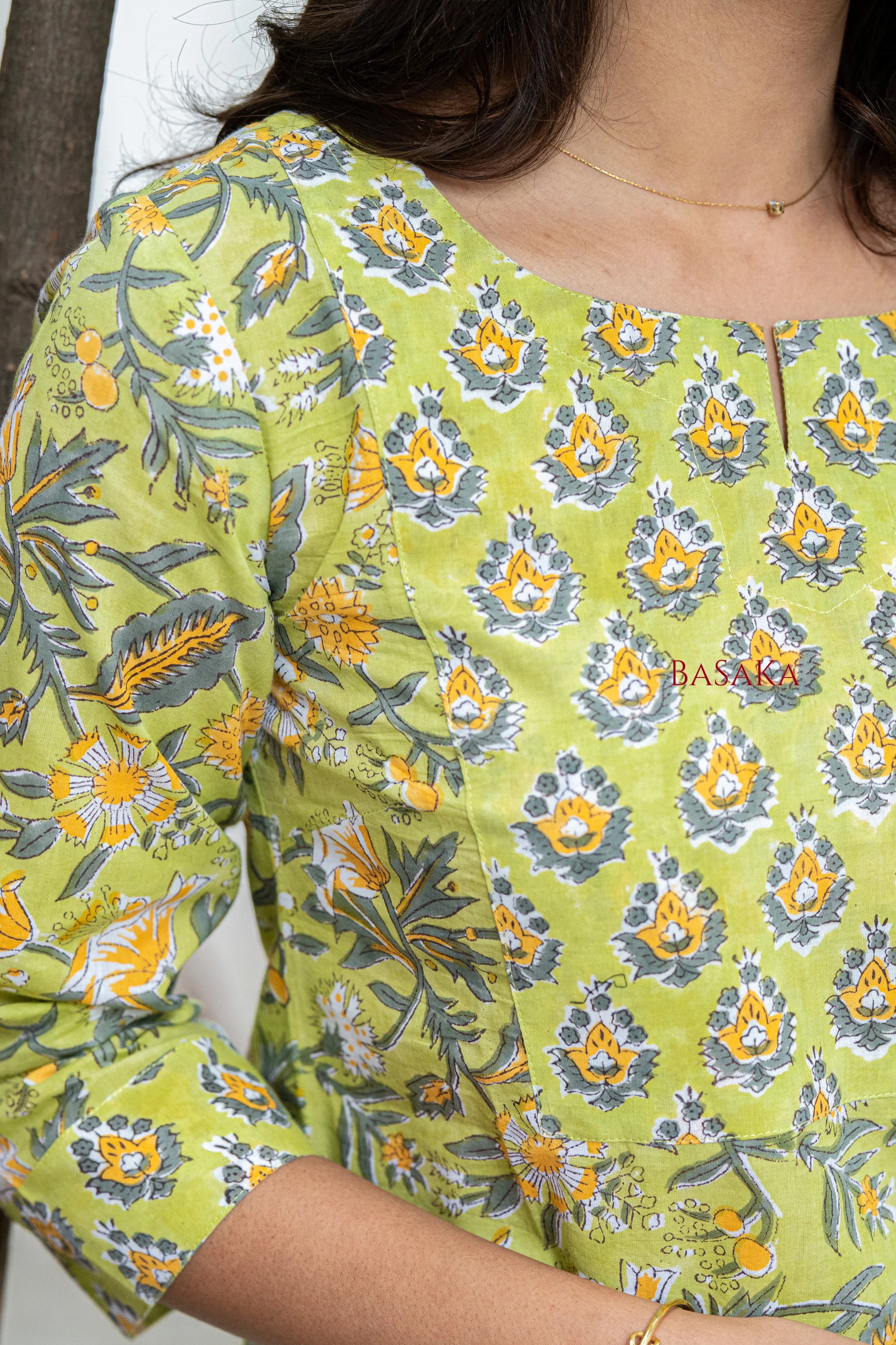 - Our Pastel Green Block Printed Short Kurti comes adorned with floral prints