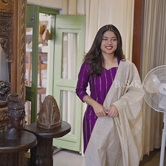 Our Soft Raw Silk Purple Suit Set, crafted from a soft raw silk blend, features an elegant texture and subtle sheen, perfect for a sophisticated festive look.